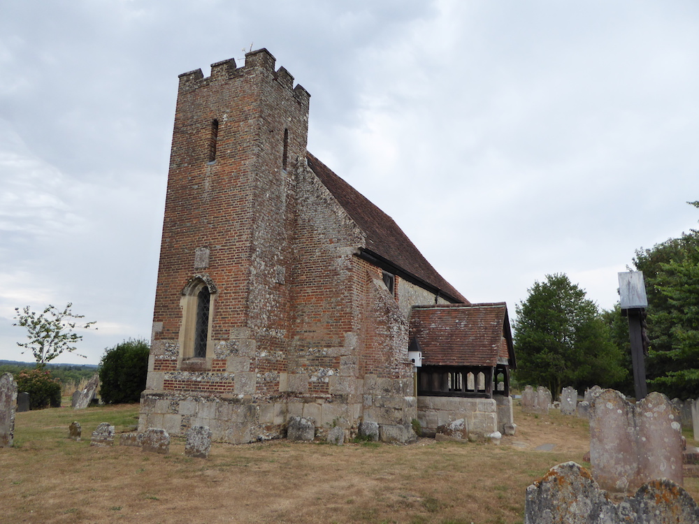 The church is located on a small rise some distance from the main village. It has associations with the Knights Hospitallers, whose Preceptory was located opposite on the site of what is now an 18th century manor house. The Hopitallers link is evidenced by the presence of their crosses on shields on the roof ribs and a tomb in the chancel and the south door’s ironwork. The church consists of a nave and chancel of rubble and flint with features dating to the 14th and 15th centuries respectively, although the church is no doubt much earlier. The brick tower has an external plaque dating its construction to 1674, and also bearing the initials ST and CW. Each image is linked to a larger version; to see the larger version it may be necessary to allow 'pop-ups'.